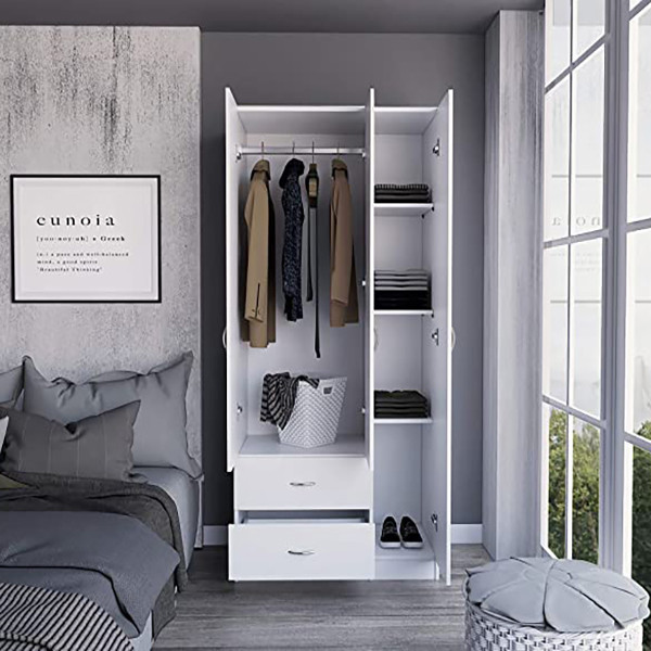 کمد لباس مدل IKE513 با طراحی زیبا دارای دو کشو زیرین و چهار طبقه کناری و همچنین در سه رنگ سفید ، آنتیک طلایی(قهوه ای تیره) و گردویی(قهوه ای روشن) می باشد. ابعاد این کمد 180 ارتفاع 45عرض و 90طول می باشد