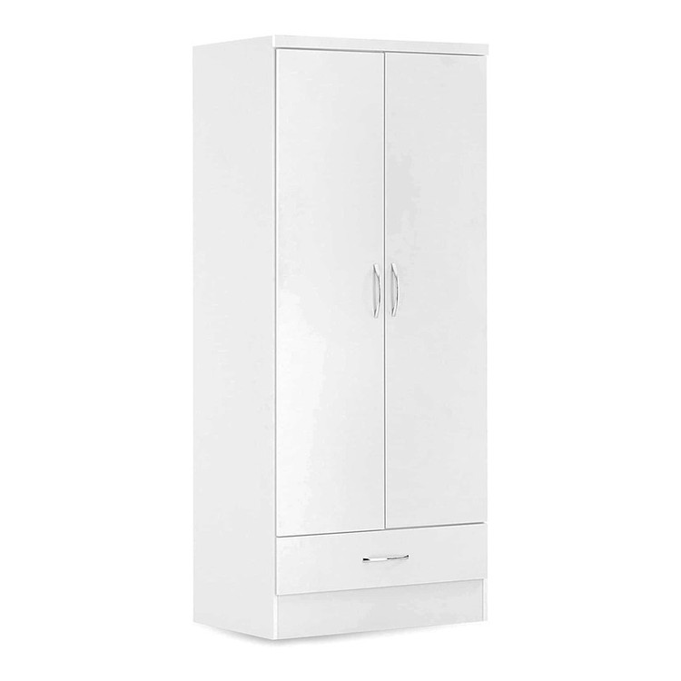 کمد لباس مدل IKE545 جنس روکش از ملامینه میباشد و دارای دو عدد درب و یک عدد کشو میباشد و درب ها از لولای آرام بند با کیفیت و کشو از ریل ساچمه ای با کیفیت و از استحکام و مقاومت بالایی برخوردار است .
