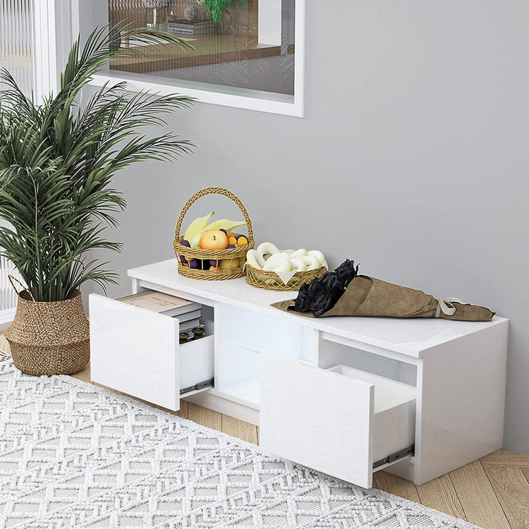 میز تلویزیون کد IKE 352 دارای دو عدد کشو با ریل ساچمه ای درجه یک میباشد و دارای یک طبقه شیشه ای در وسط میز و جنس روکش از ملامینه ضد خش میباشد و مستحکم و مقاوم میباشد در رنگ بندی های زیبا و شکیل میباشد.