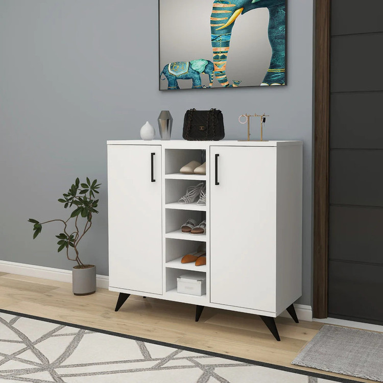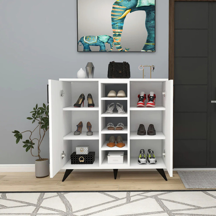 جاکفشی مدل IKE661 جنس روکش از ملامینه میباشد و دارای دو عدد درب با لولای با کیفیت و پایه های پلاستیکی مقاوم و این کالا از استحکام و مقاومت بالایی برخوردار است و در رنگ بندی های زیبا و شکیل میباشد.