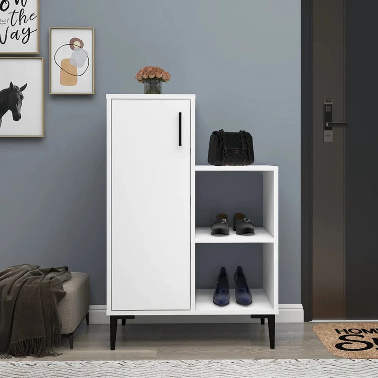 جاکفشی مدل IKE663 جنس روکش از ملامینه میباشد و دارای یک عدد درب با لولای آرام بند با کیفیت و پایه های پلاستیکی با رنگ مشکی و همچنین مقاوم و این کالا از استحکام و مقاومت بالایی برخوردار است و در رنگ بندی های زیبا و شکیل میباشد.