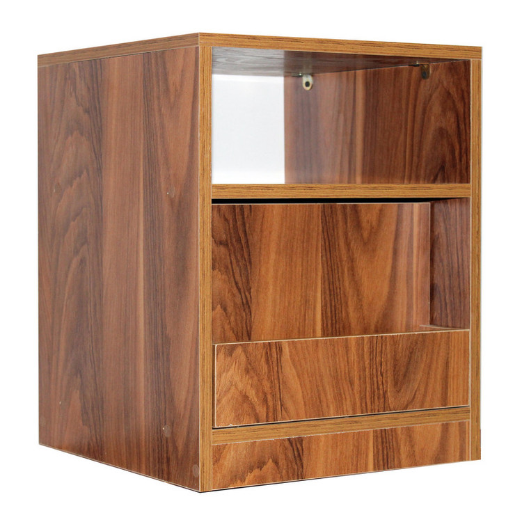 میز پاتختی کشودار IKE312 دارای کشو جادار و دارای ریل ساچمه ای درجه یک و جنس روکش از (ملامینه ضد خش) میباشد . دارای سه رنگ گردویی ، آنتیک طلایی (قهوه ای) و سفید زیبا میباشد.