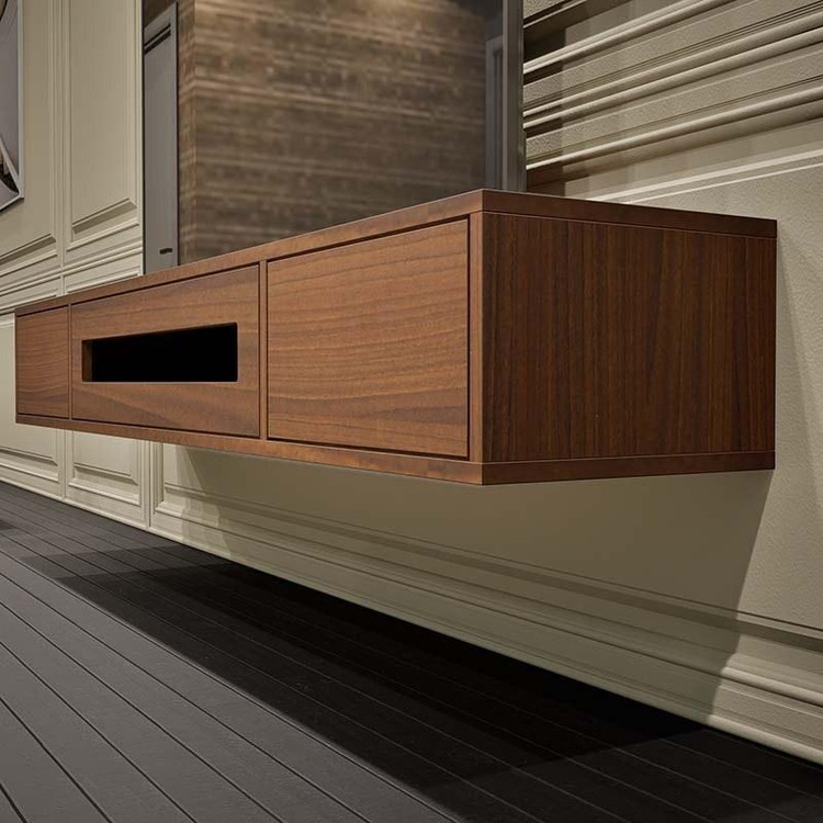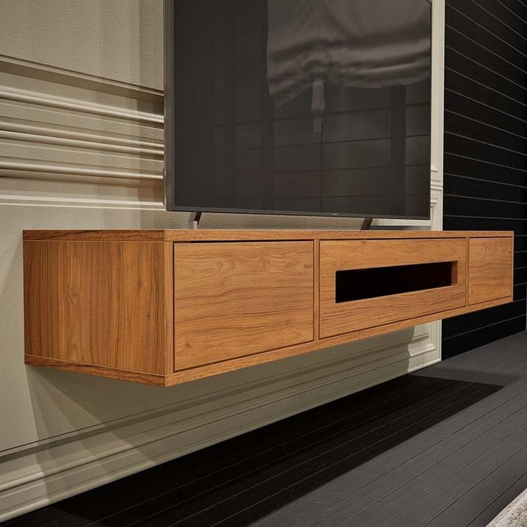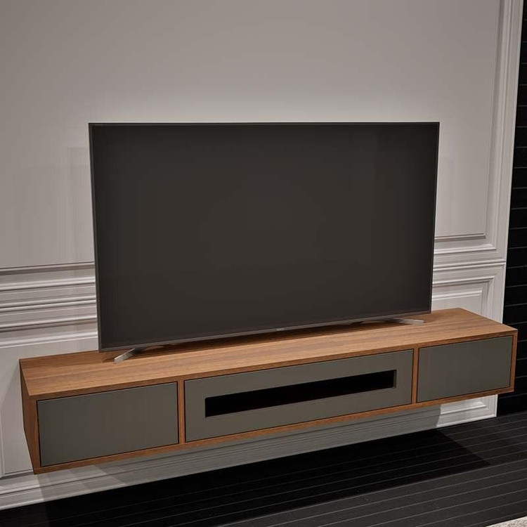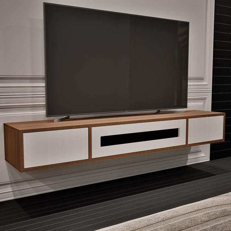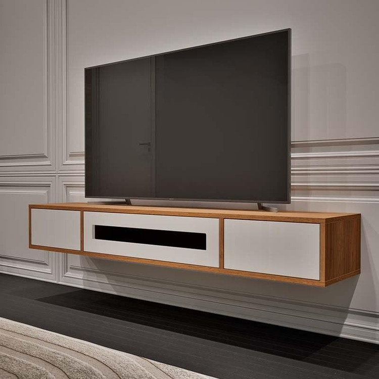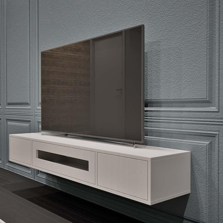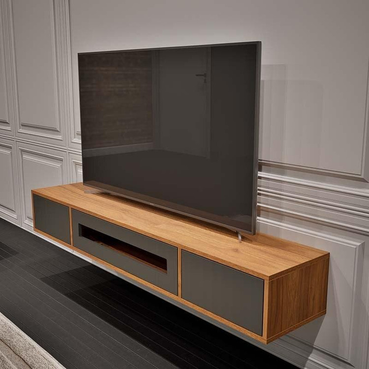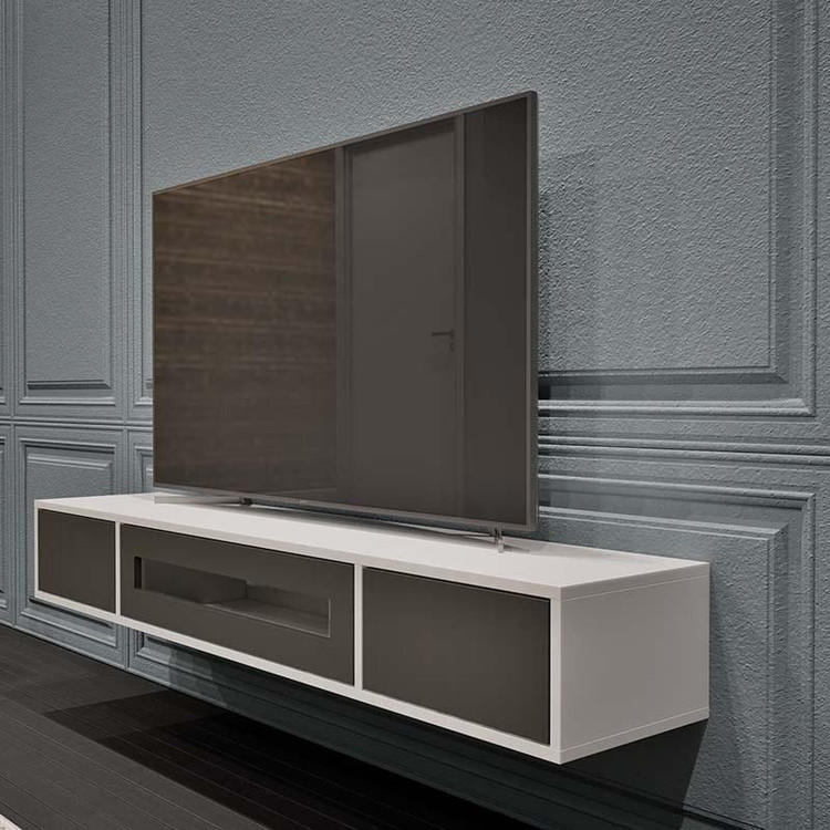 بدنه و درب میز تلویزیون TF-147 از جنس MDF درجه یک و ضد خش می باشد. TF-147 دارای دو کشو در کنار و یک درب پایین باز شو در وسط می باشد. این میز تلویزیون دیواری می باشد و به دیوار پیچ و رول پلاک می شود ، لذا قطعه پشتی این میز تلویزیون بجای ورق ام دی اف 3 میلیمتر از ورق ام دی اف 16 میلیمتری استفاده شده است ، که باعث استحکام بیشتر این محصول میشود. پیشنهاد میشود درکلیه میزهای تلویزیون دیواری ، تلویزیون را با براکت مخصوص نصب دیواری به دیوار متصل کنید. سفید / گردویی / فندقی / طوسی و ترکیب این چهار رنگ
