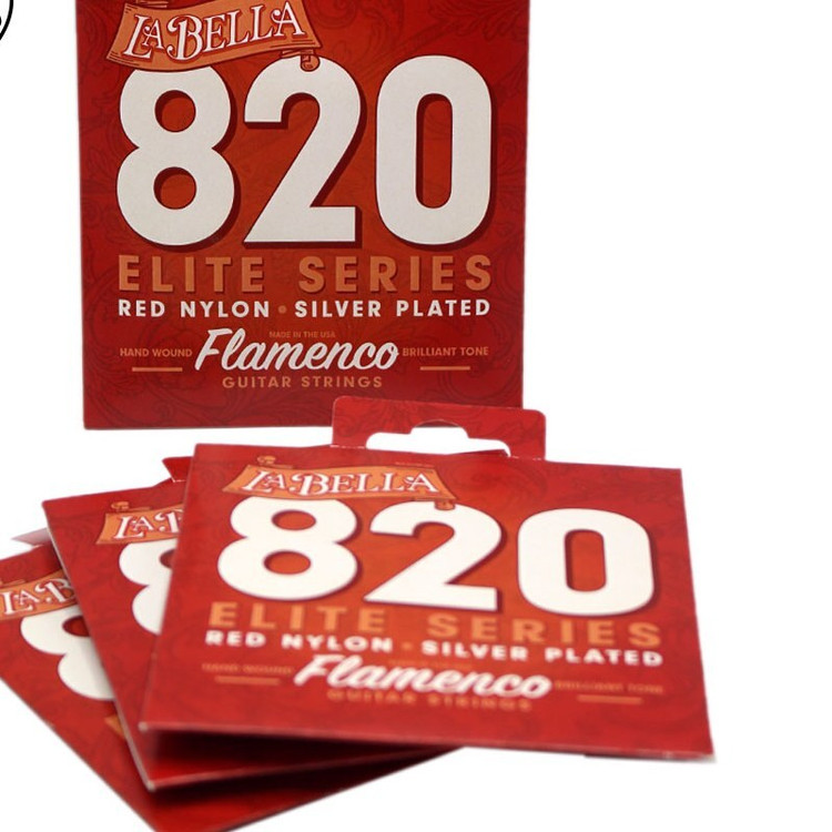 سیم گیتار فلامنکو لا بلا 820 یکی از بهترین سیم های دنیا برای گیتار فلامنکو به حساب می آید. سیم های تریبل از جنس نایلون بوده و رنگ قرمز دارند. سیم های باس روکشی از نقره دارند که کیفیت صدا و مقاومت را تا حد بسیار زیادی بهبود می بخشند. کشش این سیم متوسط یا معمولی می باشد. بافت سیم گرده بوده و تنش سیم ها به گونه ایست که انگار برای انگشتان شما طراحی شده است. استفاده از فناوری MAP در بسته بندی باعث شده تا کیفیت و ساختار سیم ها تا زمان باز شدن به دست خریدار حفظ شود.ساخت امریکا