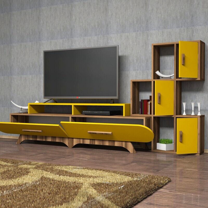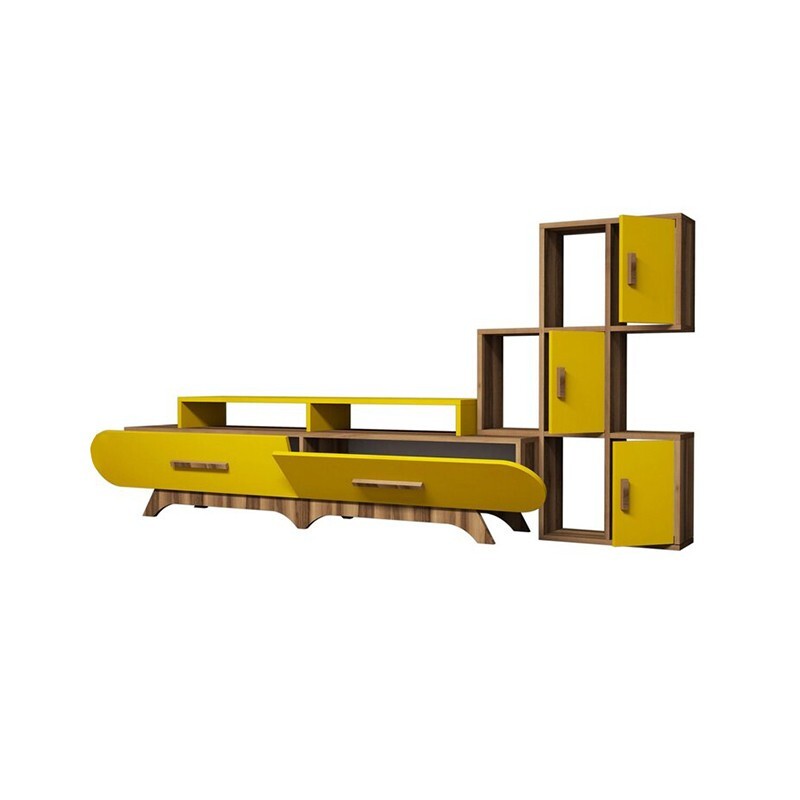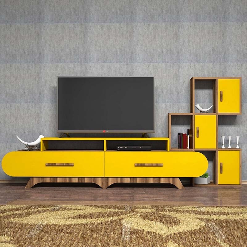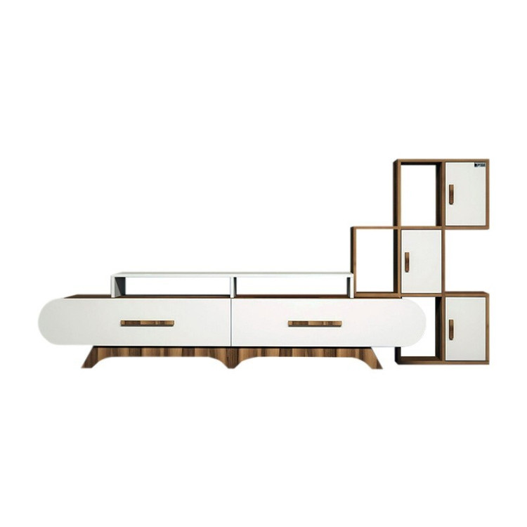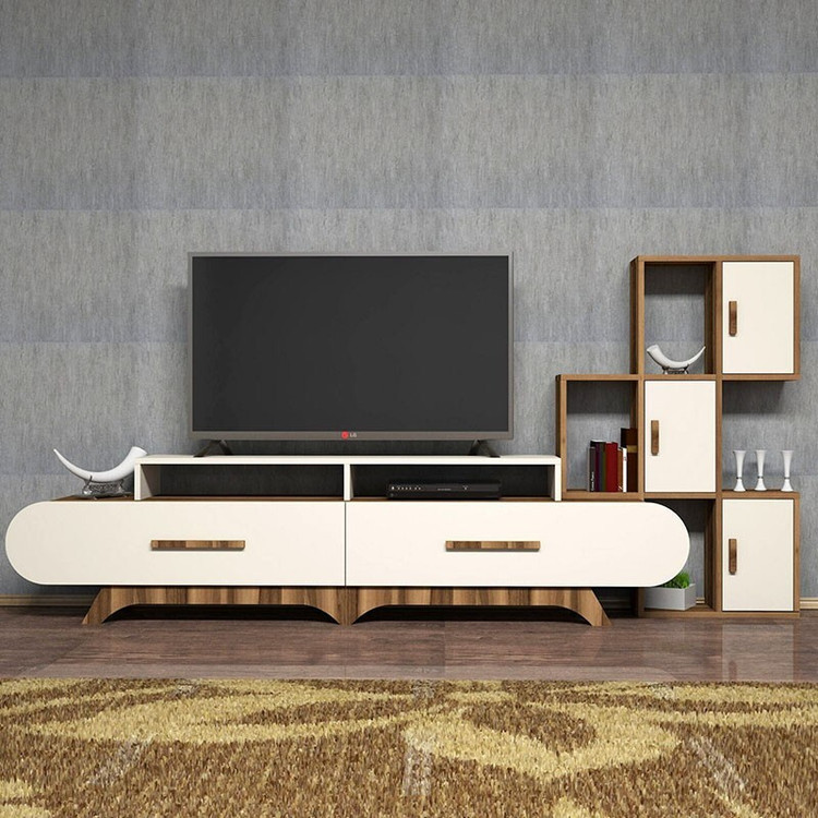 میز تلویزیون اسمردیس مدل TV150 دارای 2 کمد، 2 قفسه و 1 شلف کاربردی، شامل 3 درب و 3 قفسه می باشد.