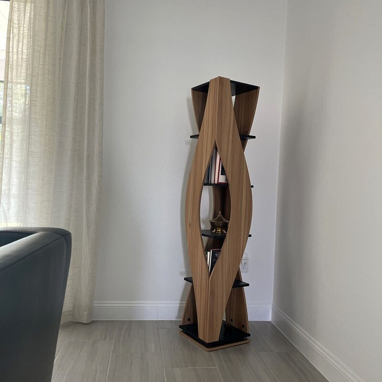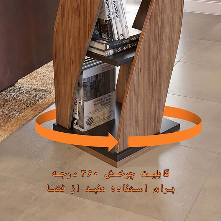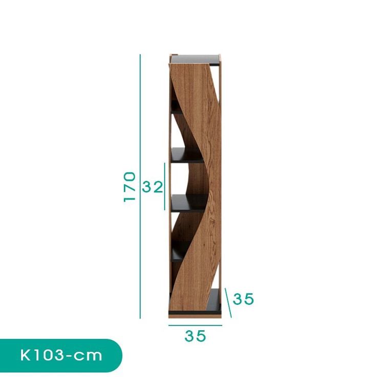 کتابخانه اسمردیس مدل K103 دارای 5 قفسه با ابعاد برابر و پایه چرخش 360 درجه می باشد.