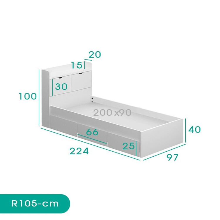 تخت خواب یک نفره مدل R105 - MDF سایز 200x90 سانتی متر