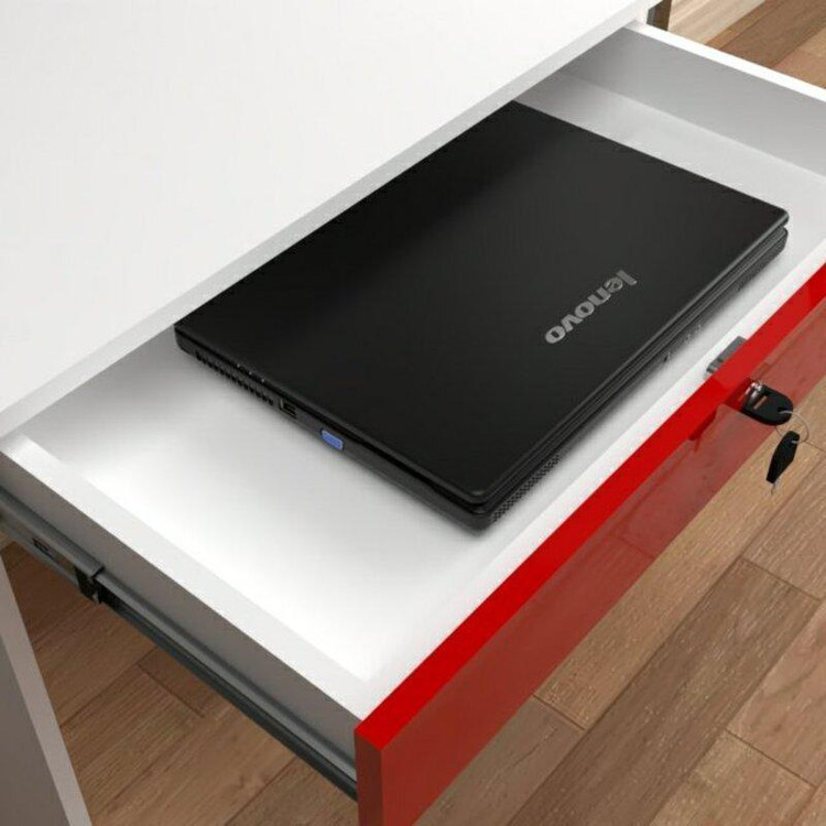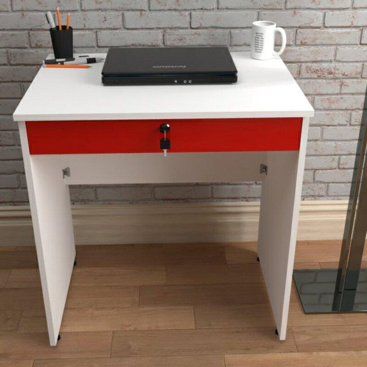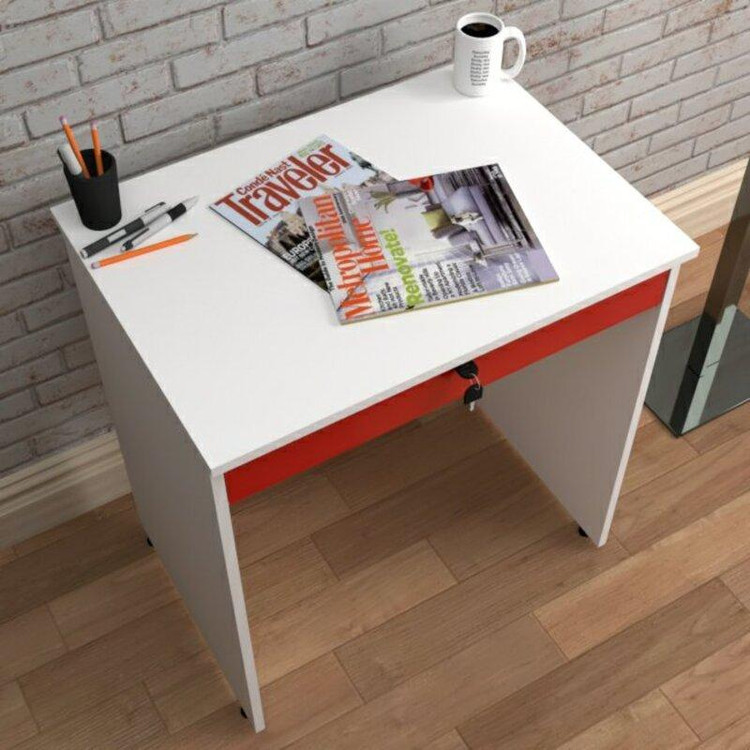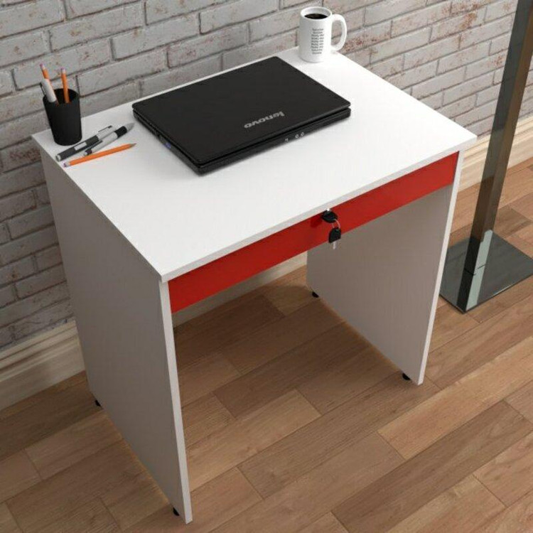 میز تحریر در ابعاد 50*70 جهت صفحه و ارتفاع از زمین تا روی صفحه 76 سانت است .دارای یک کشو قفل دار با ریل ساچمه ای سه پله ، با استفاده از متریال ام دی اف ملامینه سفید جهت بدنه و درب کشوی هایگلاس ، نوار لبه های کار دارای ضخامت 2 میلی متر است ، با امکان مونتاژ و دمونتاژ شدن به جهت استفاده از یراق اتصال پروانه کریستالی ، نحوه ارائه این کالا به صورت دمونتاژ و داخل بسته بندی مشمع حبابدار است .