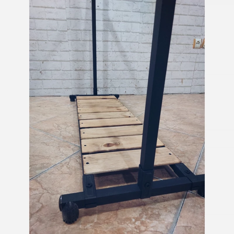 رگال دو طبقه یک و نیم متری کف چوب با قابلیت تنظیم و جابجایی آویز سبک و بسیار مقاوم همراه با آچار مخصوص خدمتتون ارسال میشه