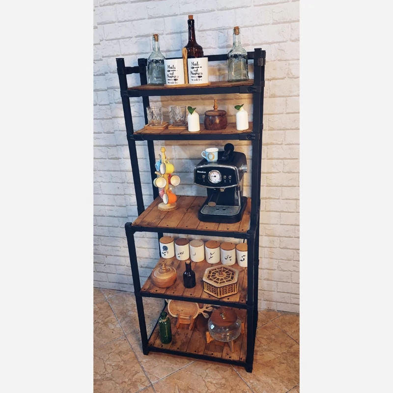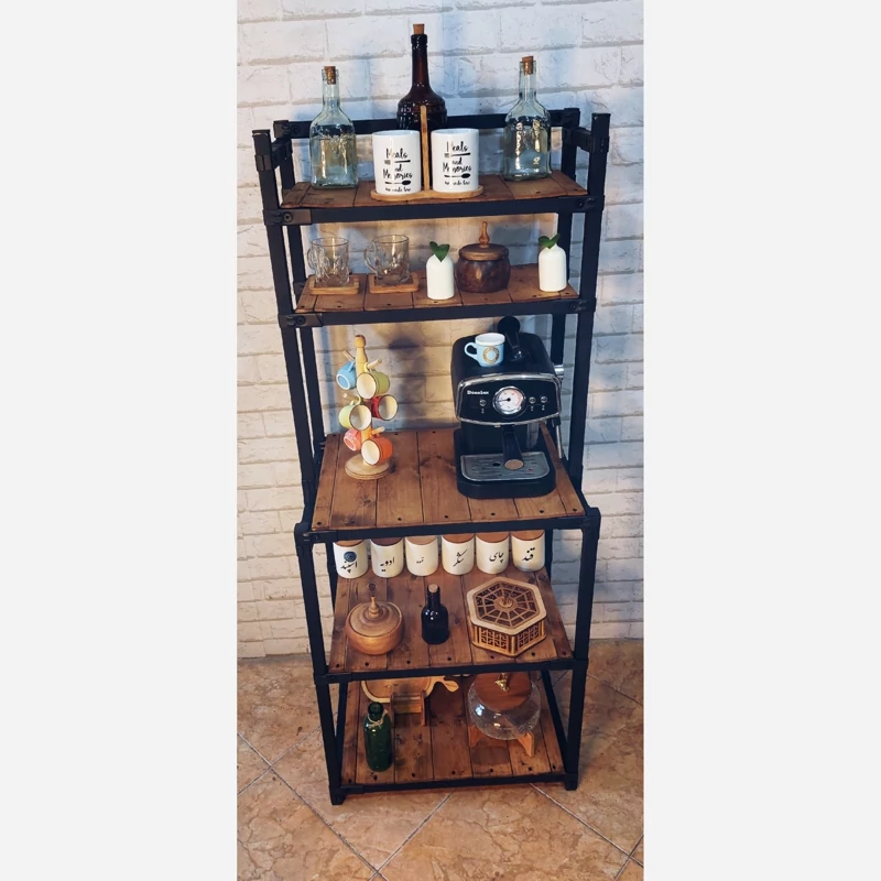 کافه بار شیک و جمع و جور با وزن پایین و تحمل وزن بالا ساخته شده از چوب روز و پروفیل آهنی ه با بست به هم وصل شده و به راحتی میتونید از هم بازش کنید و طبقات رو جابجا کنید