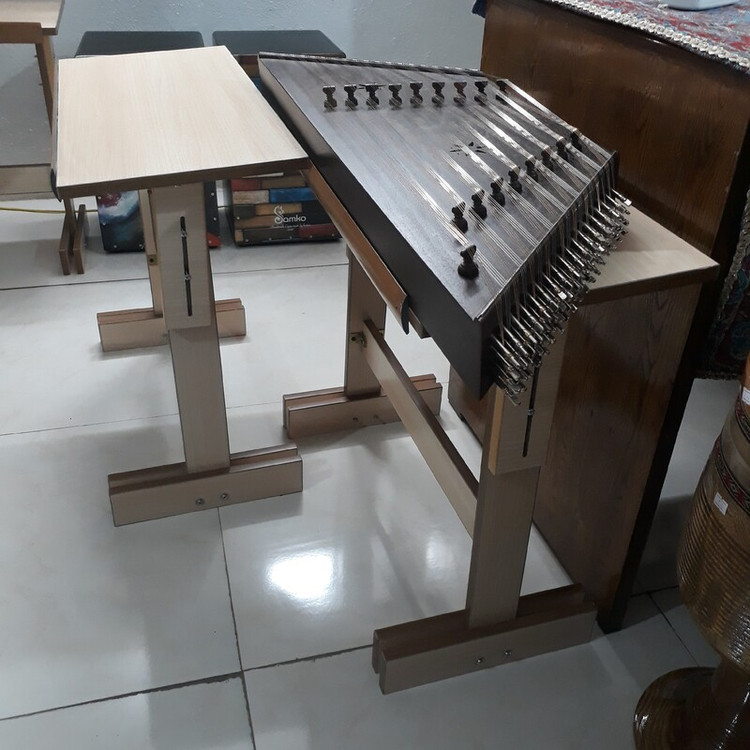 میز سنتور گردویی با پایه نت سیمی ارتفاع 80 سانتی متری از جنس ام دی اف مناسب ساز سنتور
