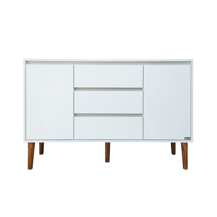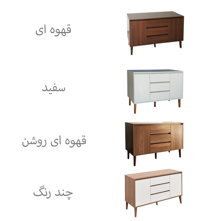 - جنس درب و بدنه ملامینه پویا - دارای 5 پایه چوب راش 20 سانتی - دارای سه کشو و دو کابین
