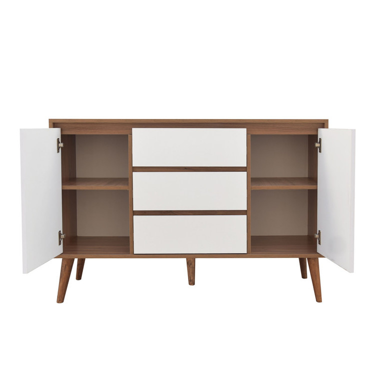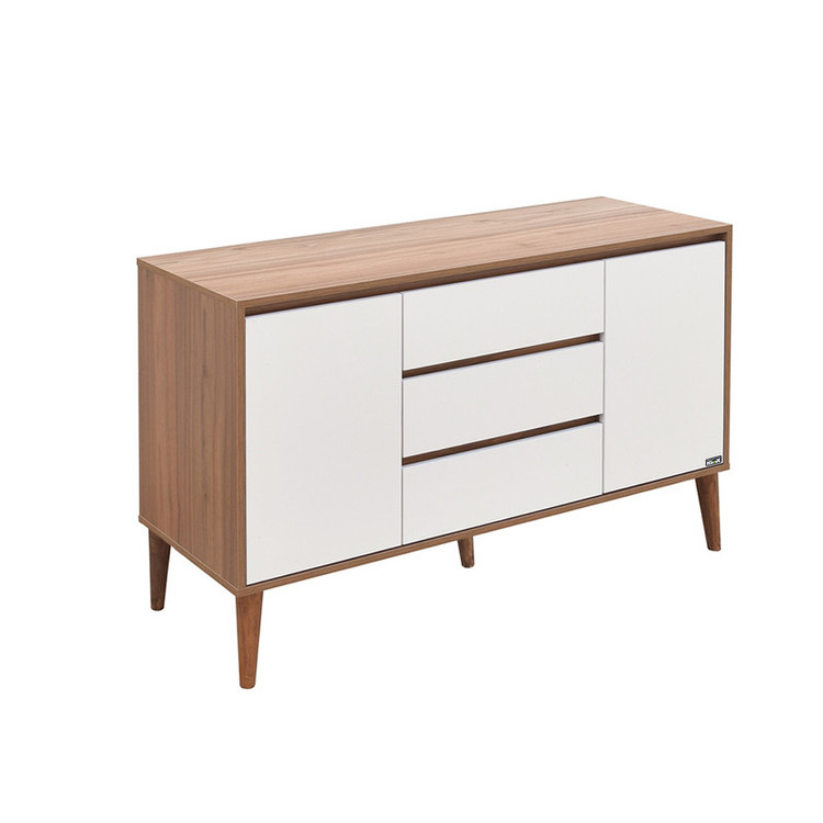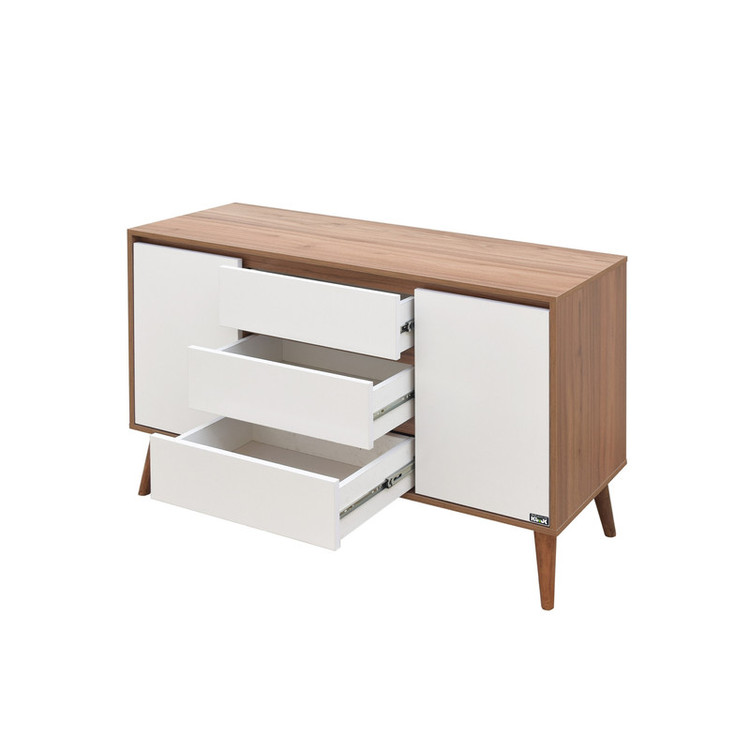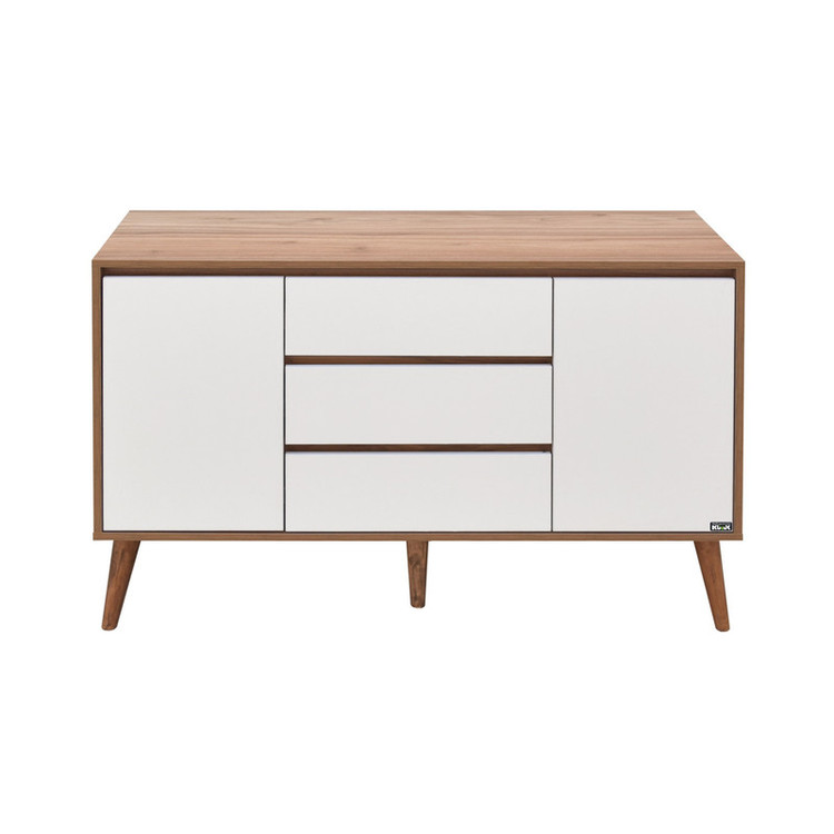 کنسول، میزی دیواری برای پر کردن فضای راهروها، اتاق خواب و سالن منازل است که علاوه بر جلوه دادن به فضای اطراف خود، جایگاه وسایل تزئینی و کاربردی زیادی مثل آینه، گلدان و وسایل پذیرایی است. کنسول صنعت و هنر چوبی کوتوک مدل کولون کد Colon، انتخاب خوبی برا زیبا و کاربردی کردن فضای خالی منازل شما است. این کنسول با لبههای pvc شده و در رنگبندی متنوع و وسیع تولید و عرضه شده است. این محصول دارای دو کابین و سه کشو است و فضای کافی برای جا دادن وسایل شما را دارد. بدنه و دربهای این کنسول از جنس ملامینه ضدخش است که دوام و مقاومت بالایی دارد. این کنسول مناسب کسانی است که با یک بار خرید انتظار استفادهی طولانی مدت از محصول خود را دارند. پایههای این محصول از جنس چوب راش هستند و 20 سانتیمتر ارتفاع دارند. ابعاد این کنسول نیز 40×80×120 سانتیمتر است و میتوان در فضاهای کوچک نیز از آن استفاده کرد.