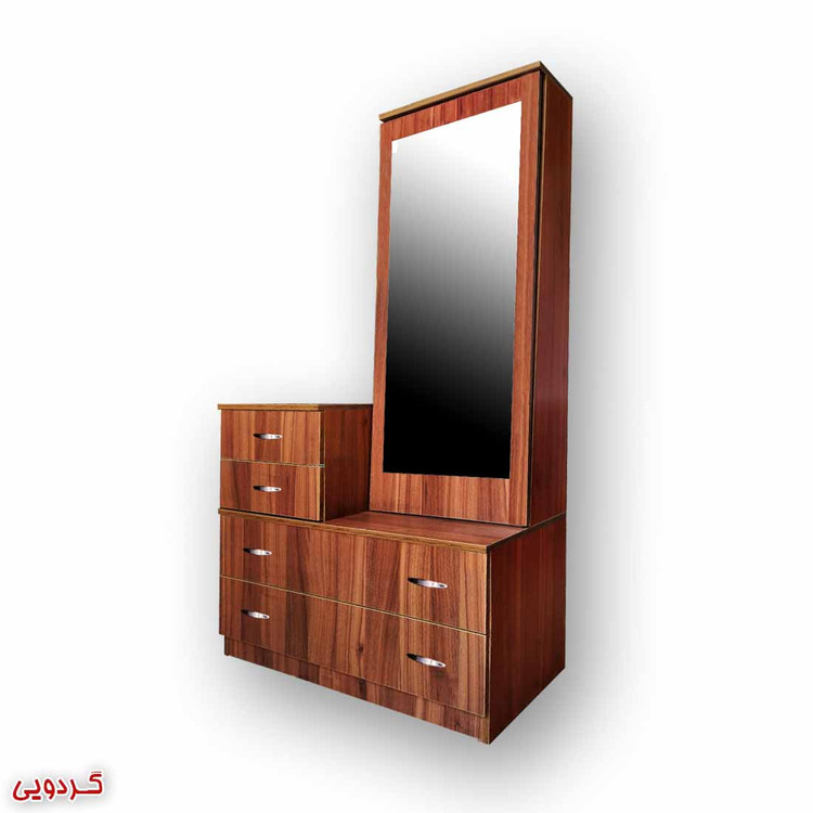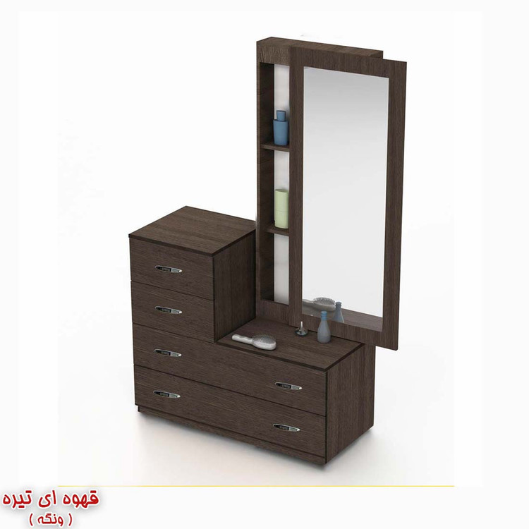 عرض میز آرایش 90 سانتیمتر میباشد. عمق 50 سانتیمتر میباشد. ارتفاع 180 سانتیمتر میباشد. آینه بصورت شیب دار میباشد که زیبایی خاصی به دراور داده است. محصول فاقد عسلی (صندلی) میباشد. دستگیره های کشو فلزی استیل دو پیچ میباشد.
