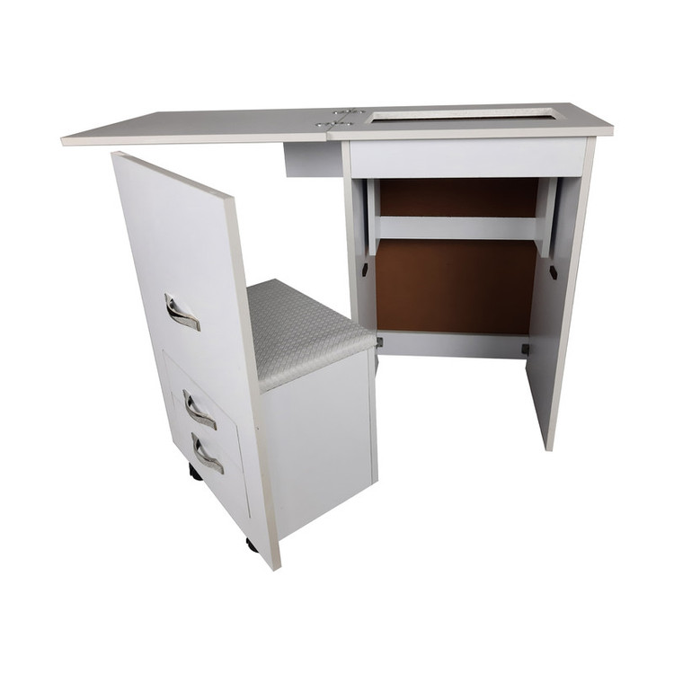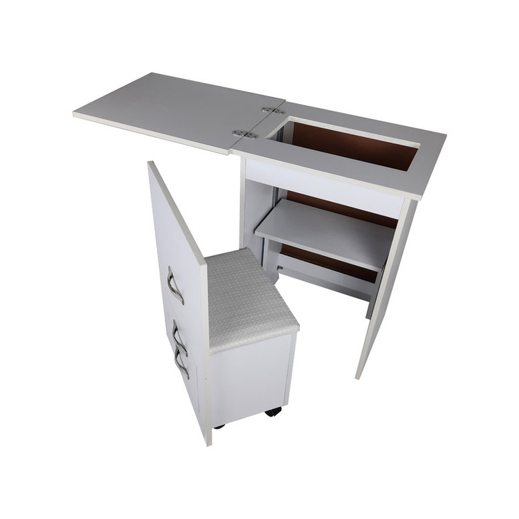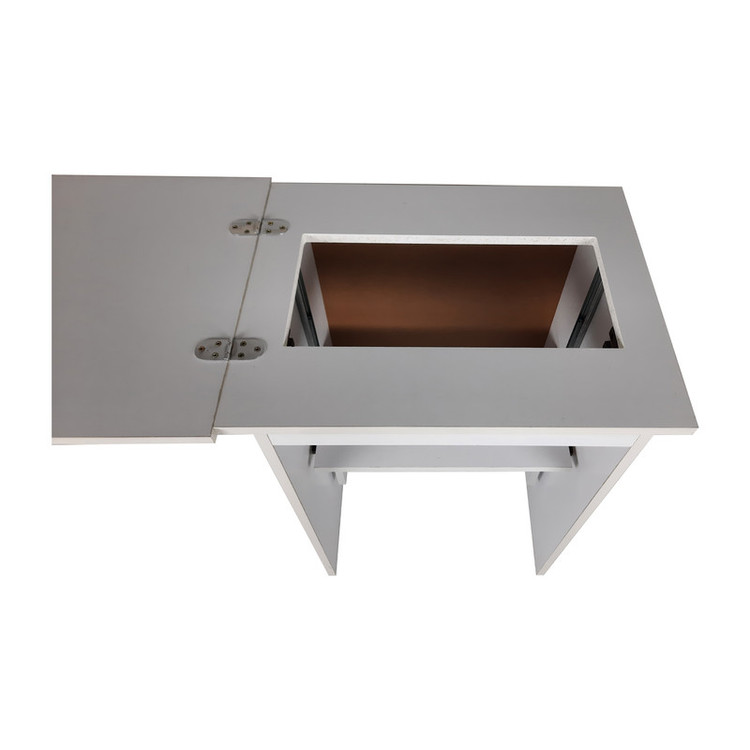 آسانسوری بودن محفظه چرخ خیاطی این امکان را می دهد که زمانی که نیازی به خیاطی ندارید، از این میز به عنوان میز تحریر نیز استفاده کنید.