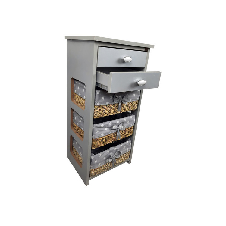 اندازه کشوها: طول: 26 سانتی متر | عرض: 22 سانتی متر | ارتفاع: 6 سانتی متر اندازه سبدها: طول: 28 سانتی متر | عرض: 22 سانتی متر | ارتفاع: 15 سانتی متر