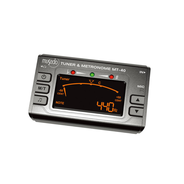 مترونوم و تیونر ماسدو (musedo) مدل MT-40 از جمله مدل های معروف مترونوم بوده که تنها با دو عدد باتری نیم قلمی تا مدت های طولانی کار میکند و از سرعت ۳۰ تا ۲۵۰ قابل تنظیم بوده و همچنین توانایی تغییر نت های آن نیز وجود دارد که به عهده کاربر میباشد.میکروفون بکار رفته در این دستگاه با توجه به قیمت آن کاملا صرفه اقتصادی داشته و از نظر دقت و قدرت اندازه گیری فرکانس های خروجی از ساز حین کوک کردن کاملا قابل قبول است.همچنین این دستگاه مجهز به یک میکروفون تماسی یا همان CONTACT MIC بوده که به حالت گیره در اقلام همراه این ساز وجود دارد که با اتصال این میکروفون تماسی به بدنه ساز تمامی فرکانس های ارتعاشات خروجی از ساز را اندازه گرفته و در صفحه دستگاه نشان میدهد که میتوان با استفاده از آن ساز را با دقت بسیار بالا کوک کرد.همچنین مجهز بودن این ذستگاه به یک خروجی ۳٫۵ میلی متری میتواند امکان اتصال هندزفری یا هدست را به کاربران بدهد و باعث شود تا نوازندگان با سرعت ثابت و بخصوصی که مد نظر دارند بنوازند و دیگران از صدای این دستگاه آگاه نشوند.لامپ های قرمز و سبز بکار رفته روی صفحه اصلی این دستگاه هم در استفاده بعنوان مترونوم و همچنین هنگام استفاده بعنوان تیونر کاملا کاربردی بوده به این صورت که در هنگام استفاده از مترونوم میتوان با دیدن لامپ ها و سرعت روشن و خاموش شدن آنها سرعت پاضرب خود را تنظیم نمود و همچنین در هنگام کوک کردن ساز نیز در صورت روشن شدن لامپ های قرمز متوجه بالا یا پایین بودن فرکانس ساز خود میشویم و با دیدن لامپ سبز روشن متوجه تنظیم بودن فرکانس صدای خروجی ساز خود میشویم. قرمز به معنای بیشتر یا کمتر بودن فرکانس مد نظر و سبز به معنای هم ارزی با فرکانس مد نظر است.